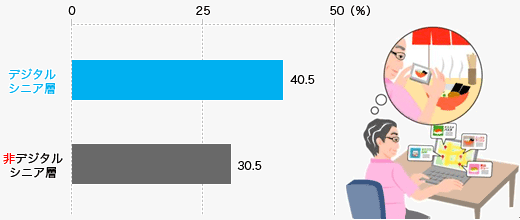 という結果になり、デジタル層(デジタルシニア)は、非デジタル層と比較して情報感度が高いことが明らかになりました。