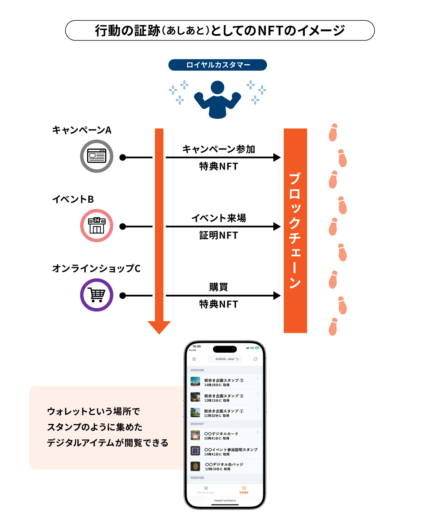 たとえば、駅で取得したスタンプNFT、店舗で配布された購買NFT、イベント参加時の特典NFTなどが、ひとつのウォレット内に集約されます。